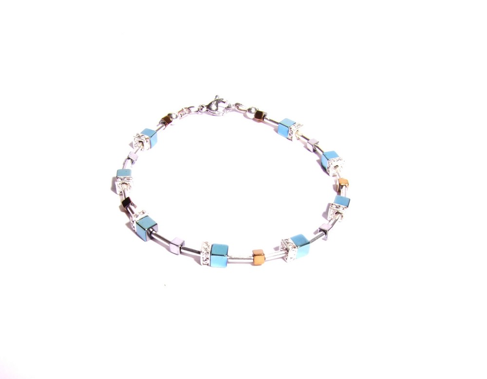 Material: Hämatiwürfel, Stäbchenperlen, Strassrondelle, Metall, Edelstahl, Juwelierdraht