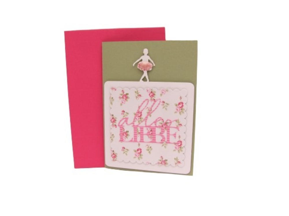 Liebevolle Karte mit einer Miniballerina auf Rosenpapier.