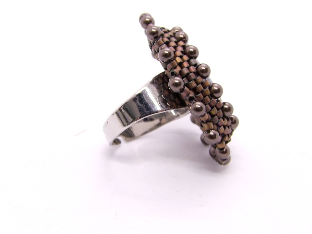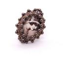 Ein ovaler Glascabochon, hinterklebt mit ein Vintage Lady, umperlt mit farblich passsenden Rocailles und Swarovski® Crystal Pearls.