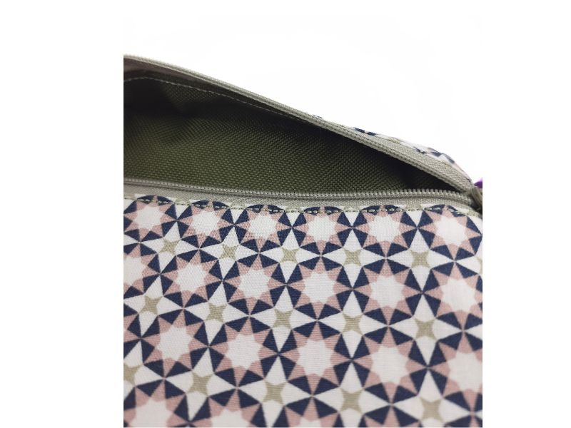 Die Tasche verfügt über ein beschichtetes Baumwollfutter, das wasserabweisend ist. Sie kann bei 30 Grad in der Waschmaschine gewaschen werden.